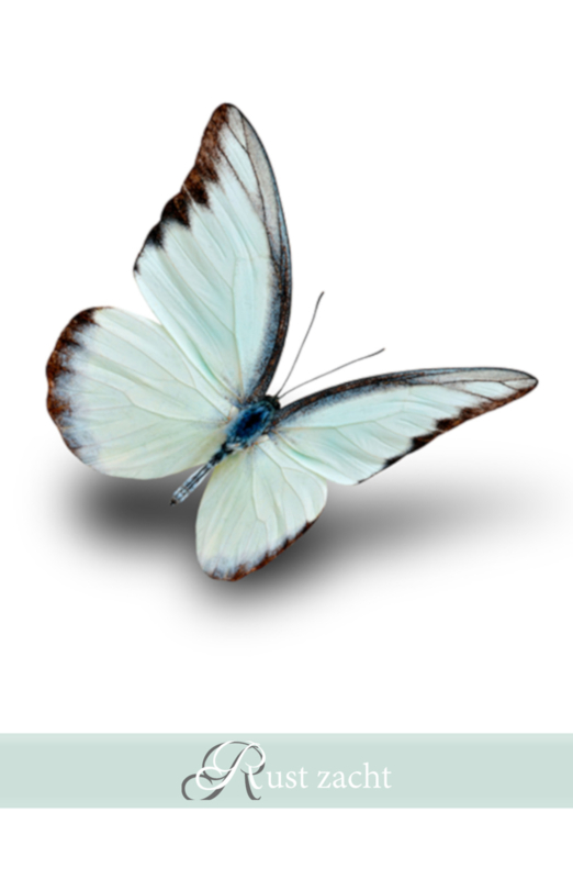Rouwkaartje Silence 9x14 | vlinder | dubbel | 12 stuks | Rust ZachtRouwkaartje van natuurkarton 90x140mm uit de serie Silence, geleverd per 12 stuks, dubbel uitgevoerd met aan de achterzijde een boorgaatje voor bevestiging aan een (rouw)boeket.