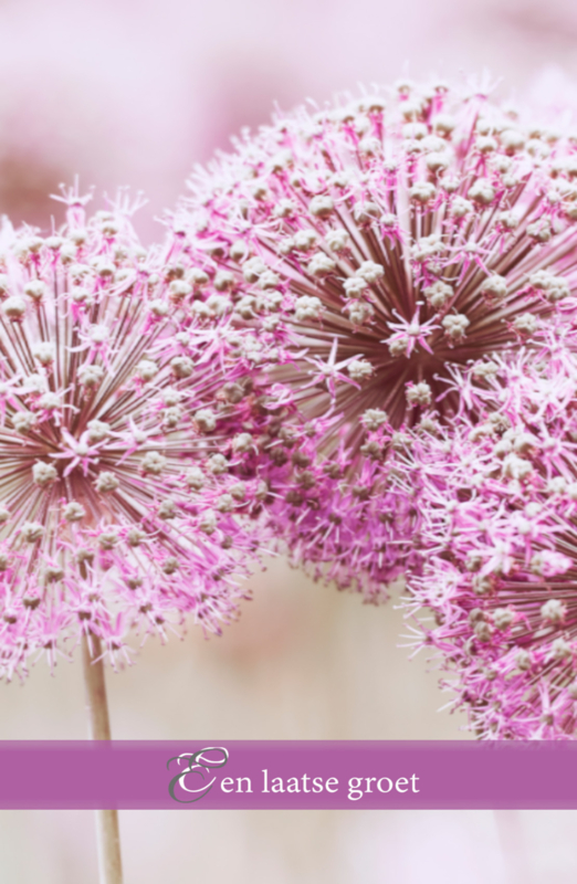 Rouwkaartje Silence 9x14 | roze | dubbel | 12 stuks | Een laatste groetRouwkaartje van natuurkarton 90x140mm uit de serie Silence, geleverd per 12 stuks, dubbel uitgevoerd met aan de achterzijde een boorgaatje voor bevestiging aan een (rouw)boeket.